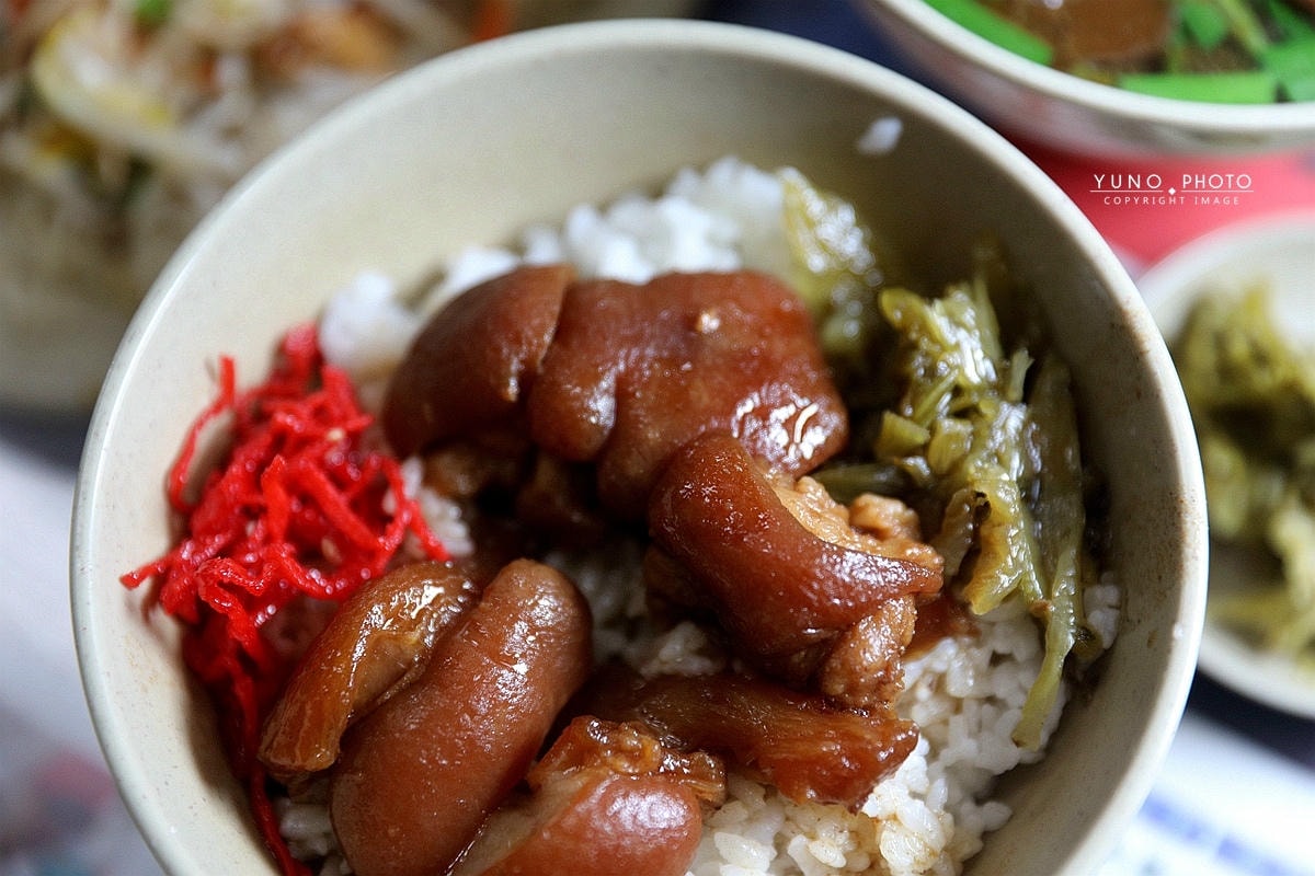 主販售古早味香菇豬腳飯 豬腳是分部位賣,從蹄膀、中段、腿庫、腳蹄到豬尾都有