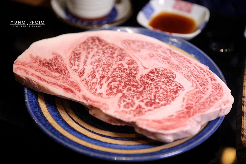 剛上來還不能急著吃 服務人員會幫你桌邊服務 這和牛油花看來相當不錯