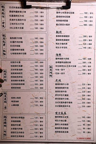 菜色會不定時更換 而且料理種類相當豐富 無論是吃正餐或是喝酒小食 都可以滿足需求