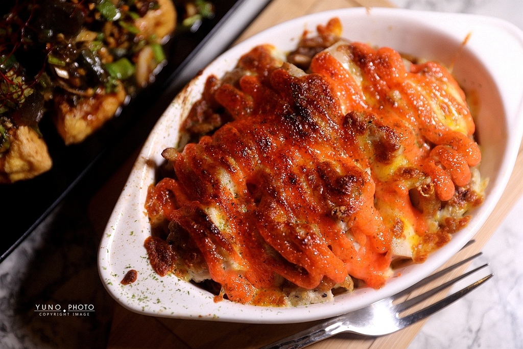 熔岩起司加上鮮嫩多汁的雞腿排 濃郁鮮香的明太子醬給得也完全不手軟