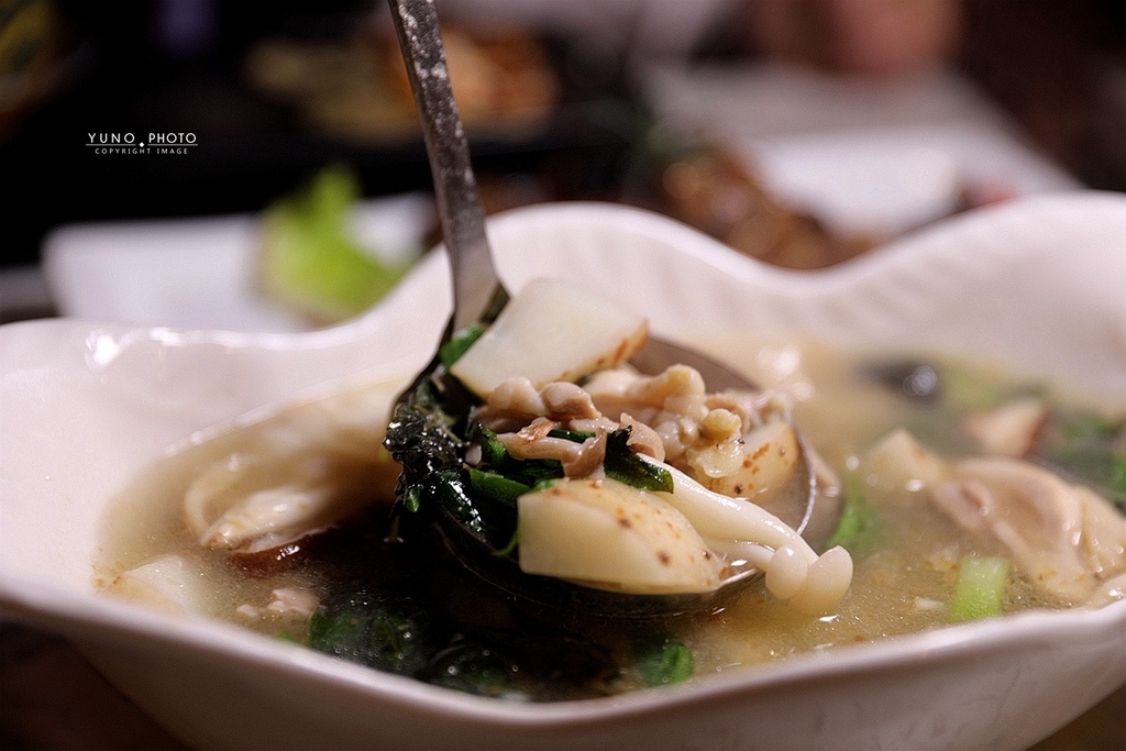 非常適合小酌後 喝喝熱湯暖暖胃 濃郁香醇的山藥蒜頭雞湯 裡面還有添加蛤蜊
