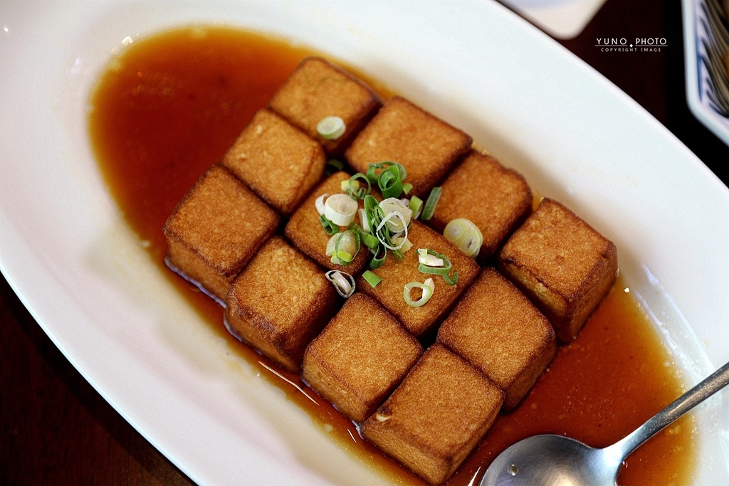 外觀粗老的雞蛋豆腐吸飽湯汁 如軟綿凝脂般的內在