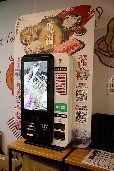 選好湯底及搭配肉品之後 再到自助點餐機投幣點餐