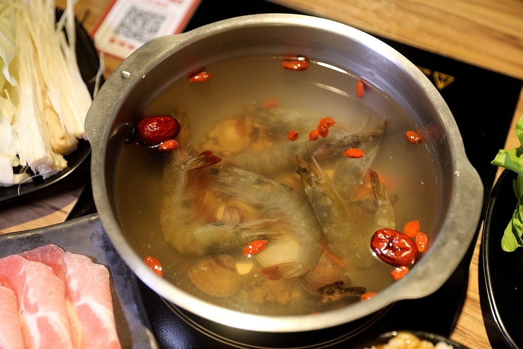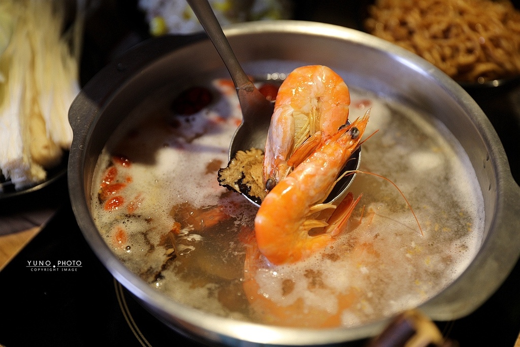 湯底裡面放了中藥食材 還有數尾鮮蝦!