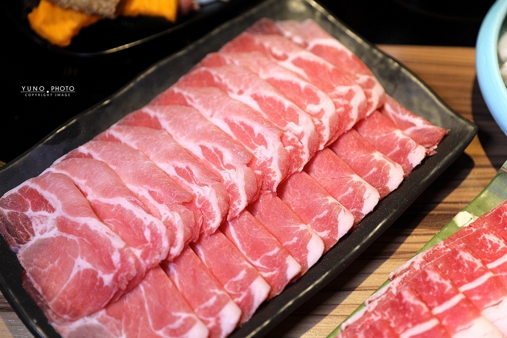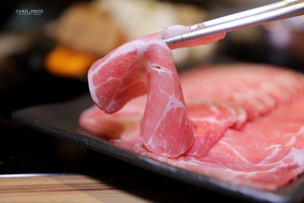 雪花般的油花分布在肉片上 肉質鮮嫩 油脂味道濃厚 口感鮮甜香氣十足