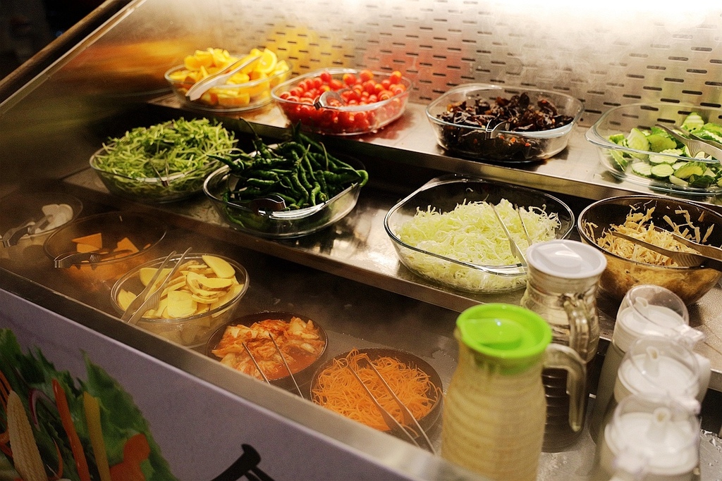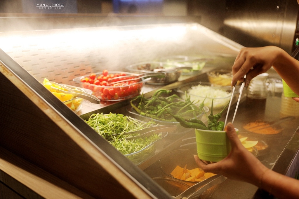店中間還有提供沙拉吧 除了各式新鮮蔬果 有南瓜 杏鮑菇 糯米椒可以做燒烤