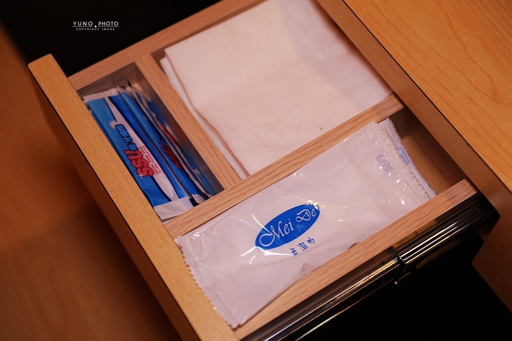 桌面很大 餐點擺滿也不會覺得擁擠 桌下還放有紙巾與面紙 牙線相當貼心