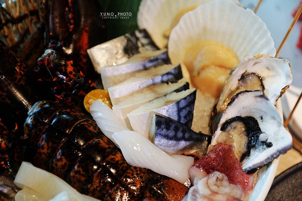 根島生態蝦*2/干貝*2/挪威鯖魚*半隻/生蠔*2/花枝/珍珠鮑魚*2/扇貝*2/小卷/魷魚