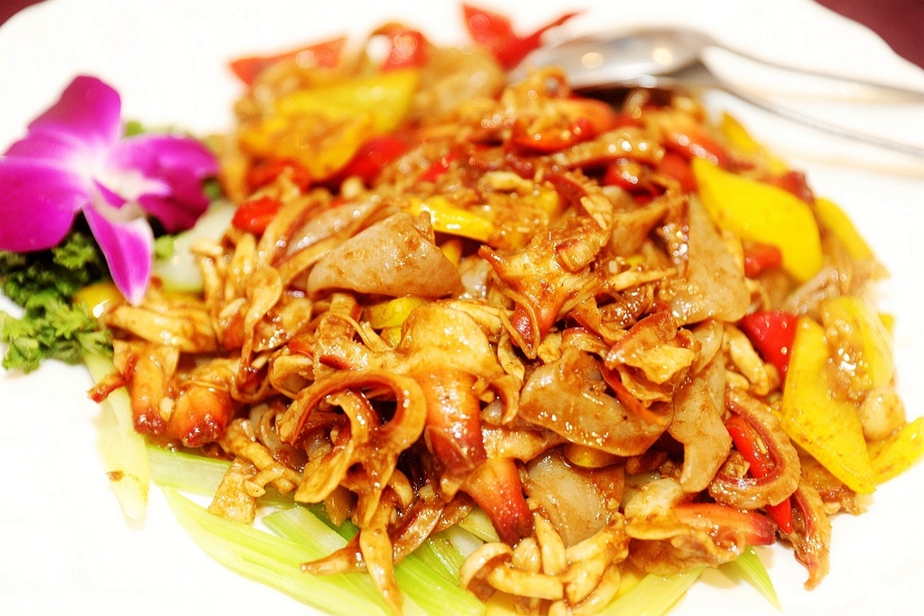 滿滿一盤好料 蘭花蚌和象拔蚌加上多種蔬菜拌炒