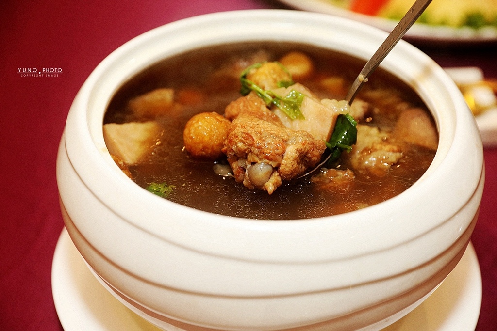 最棒的是宴席桌菜豐盛不馬虎 儷影招牌佛跳牆、蒲燒鯛魚香米糕、港式沙嗲爆雙蚌