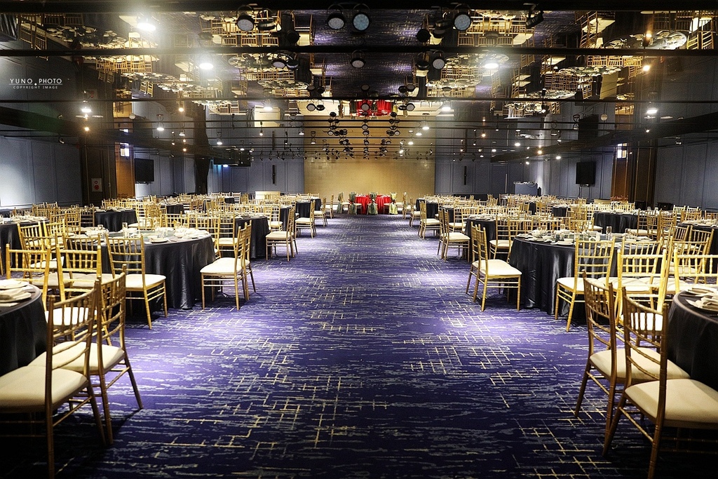 台中天圓地方婚宴廳天花板採黑色鏡面 視覺上開闊寬敞