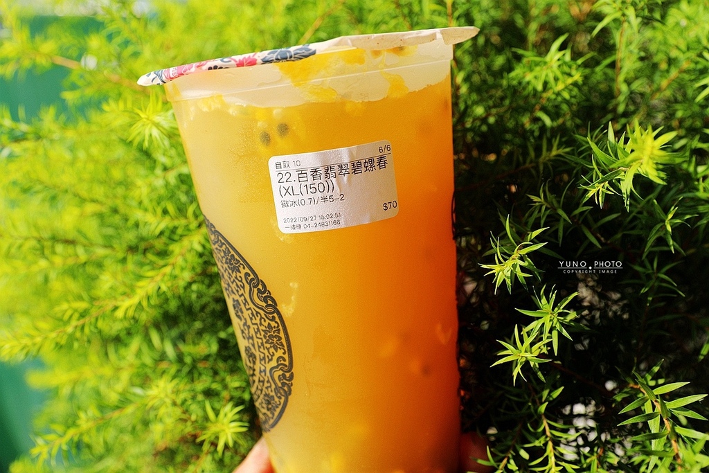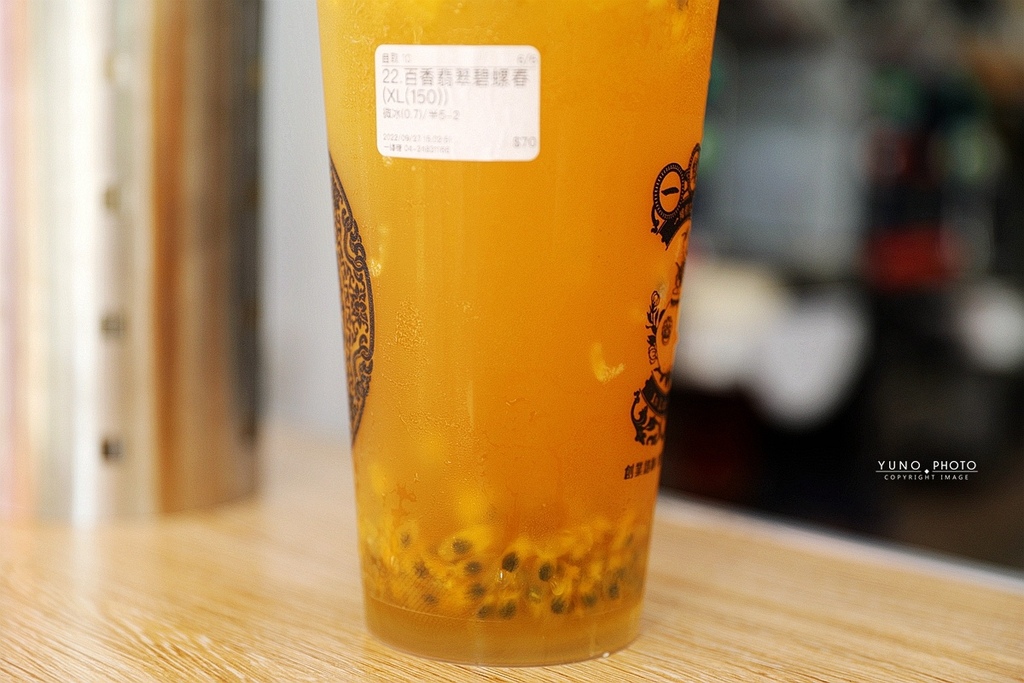 以鮮泡碧螺春綠茶為基底 搭配真材實料的百香果粒