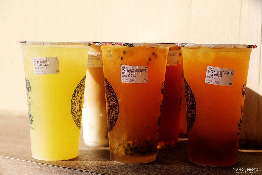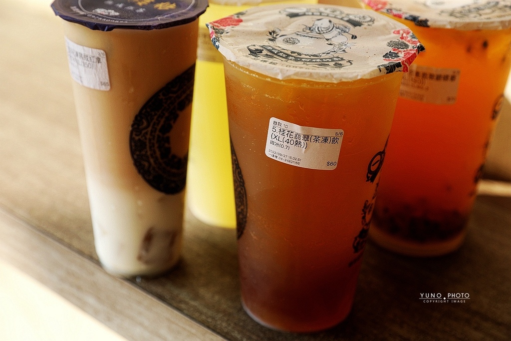 分別為甘蔗雷夢、百香翡翠碧螺春、桂花翡翠茶凍飲
