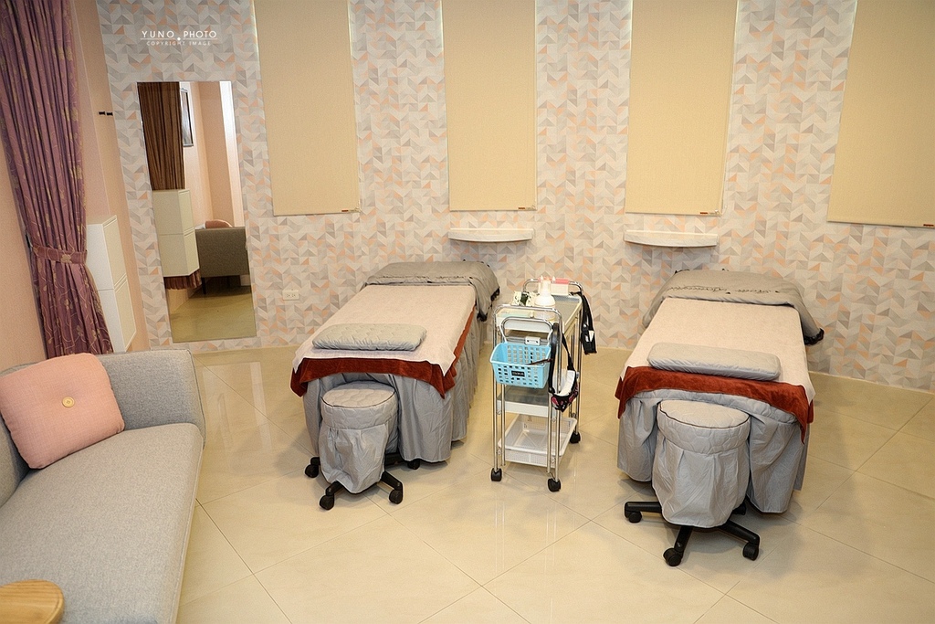 二樓的美容間 整體色調以白色及木頭色調為基底 整體也是舒適又居家的感覺