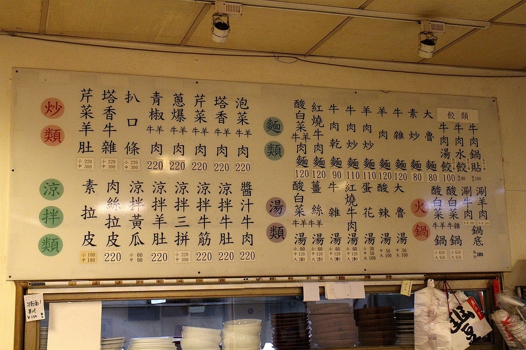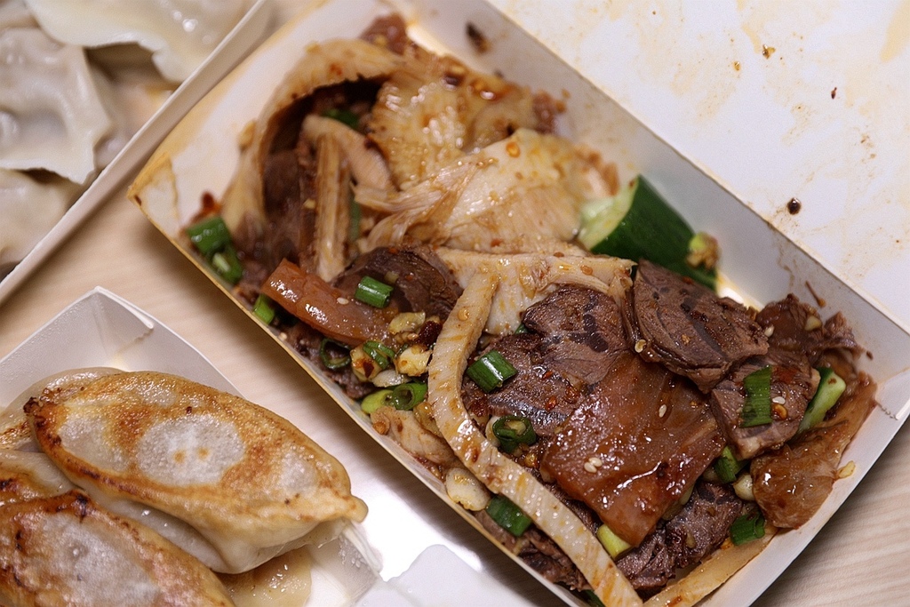 主打黃牛水餃、鍋貼、牛肉麵、酸辣麵、快炒、涼拌類、湯類