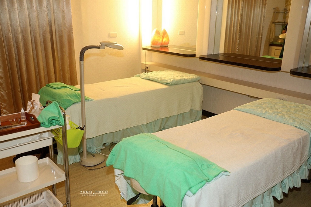 換上美容衣之外 昏黃燈光讓心靜下來搭配上輕鬆音樂