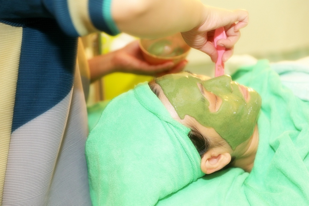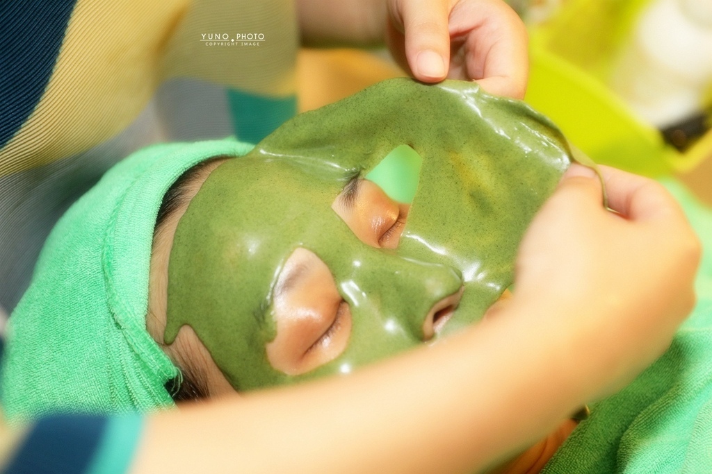 因為朋友的皮膚較為敏感 美容師接著使用抗敏軟膜來做敷臉