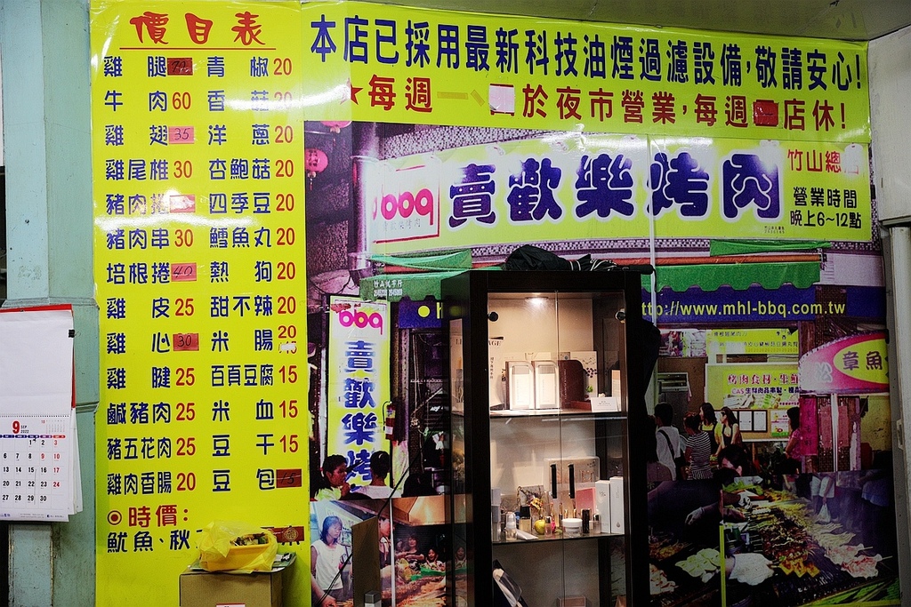 賣歡樂烤肉位於竹山鎮下橫街上 營業時間從晚上七點到晚上十一點