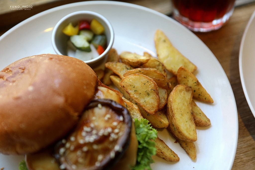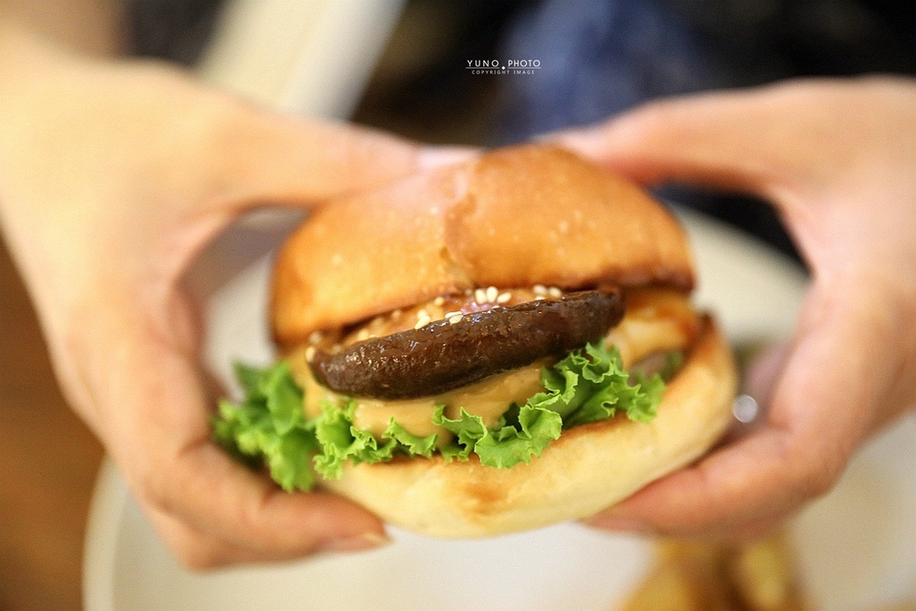 由於YUNO是第一次來不知道要點什麼 就選擇主打的牛肉漢堡