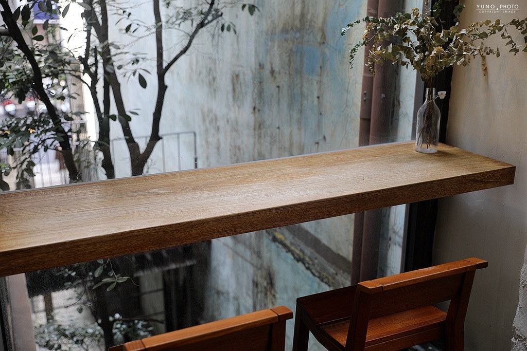 櫃臺旁還有個靠窗的雙人座位 玻璃窗讓自然光照入