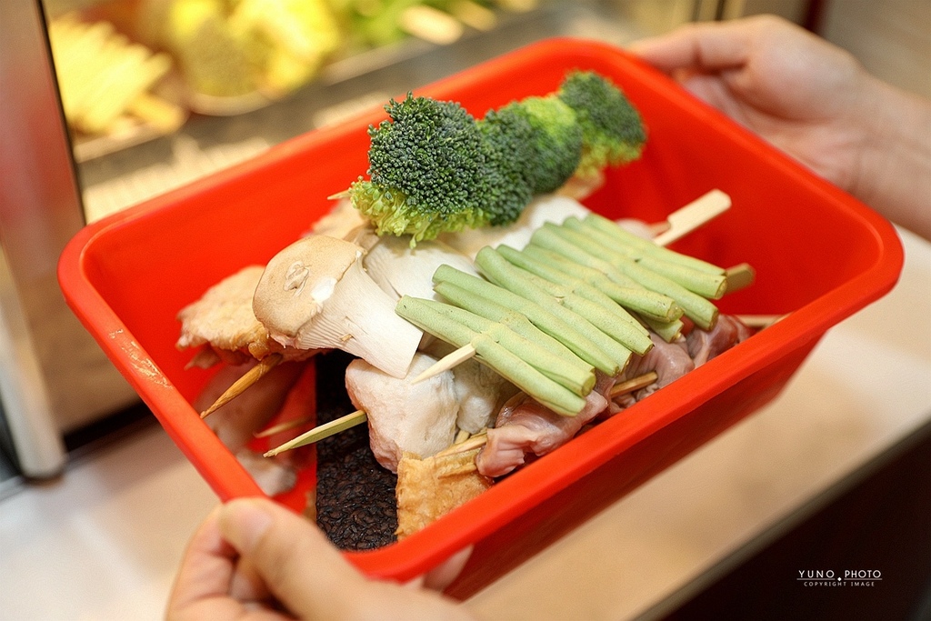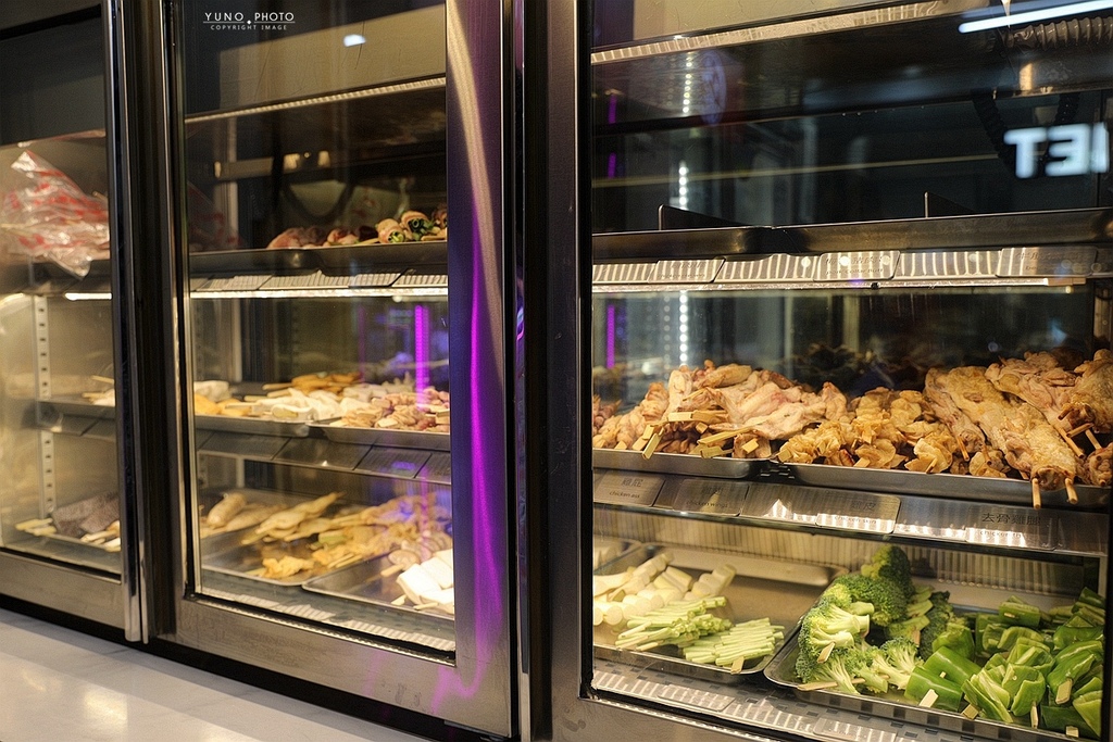串燒都整齊陳列冰櫃中 採自取方式拿取 品項相當豐富