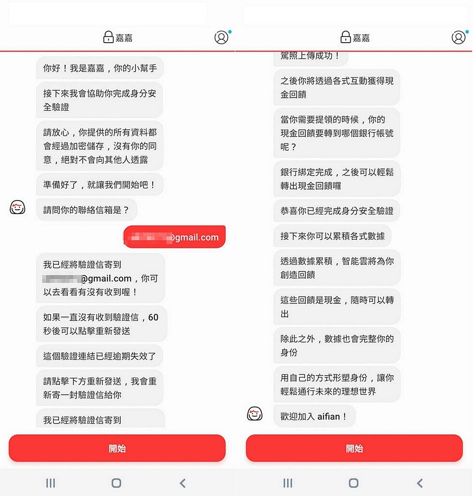 註冊時綁定手機號碼之後 接著小幫手嘉嘉就會開始之後的驗證工作