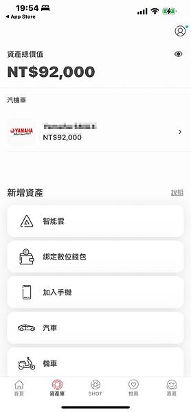 透過 aifian還可以將汽機車、智能雲等上傳至資產庫 簡單掌握資產狀態