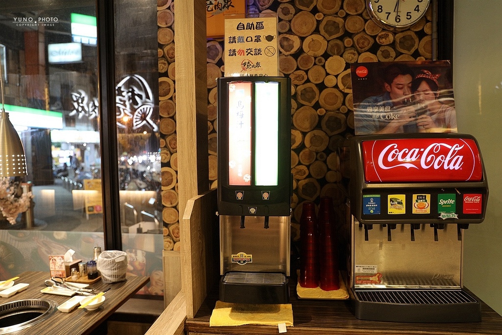 分別有可樂、雪碧、氣泡水、紅茶、烏梅汁、日式煎茶...等