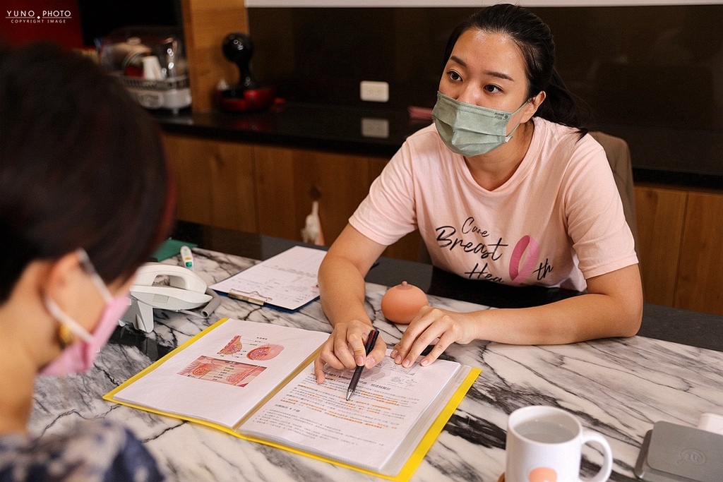 美胸師在做胸部觸整檢查時 也會說明個人的狀況 以客製化方式進行課程調整