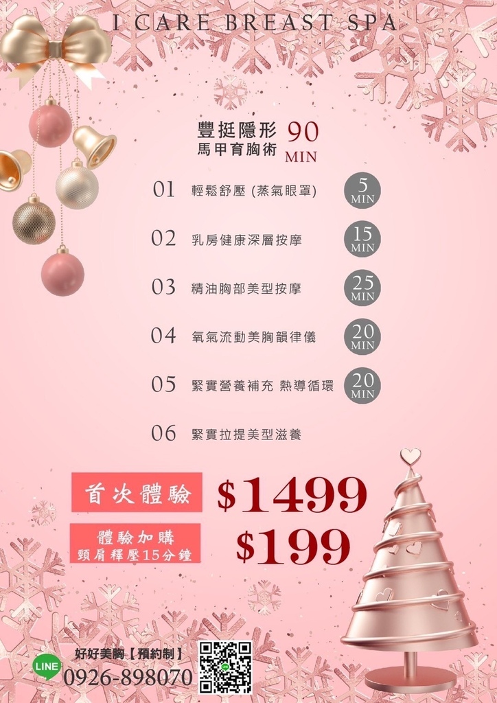 美胸按摩課程有限 建議提早1-3週預約 比較可以約到喜歡的時段喔