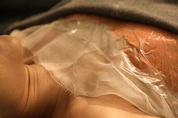 美胸師手法從四面八方 由外往內撥 將兩側的副乳往前集中按摩