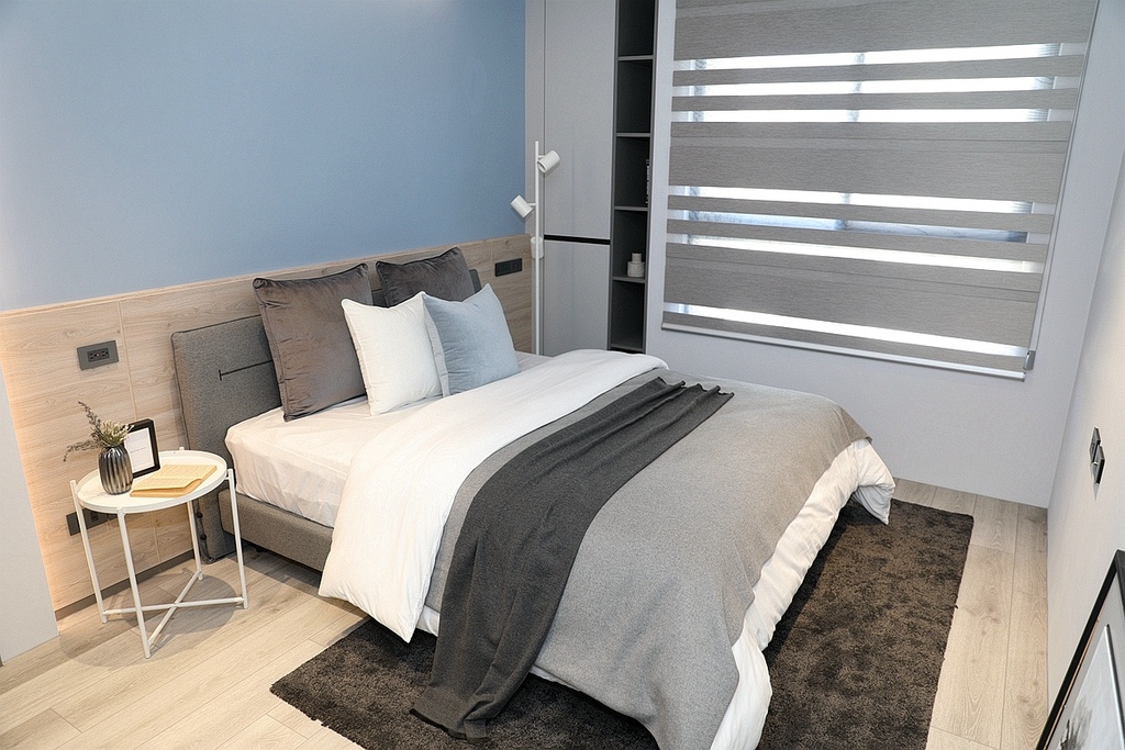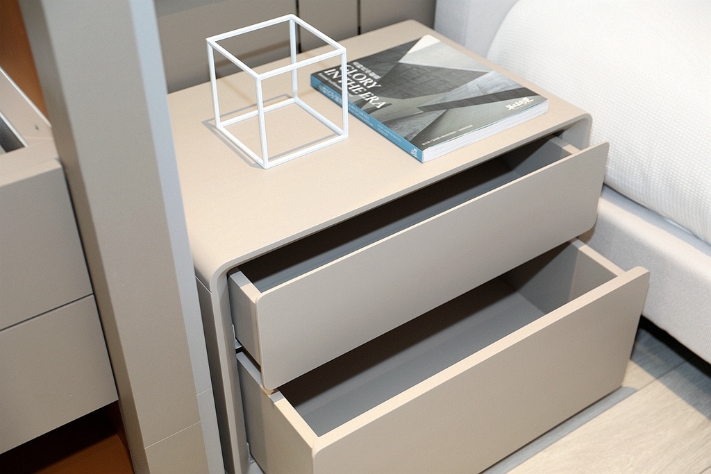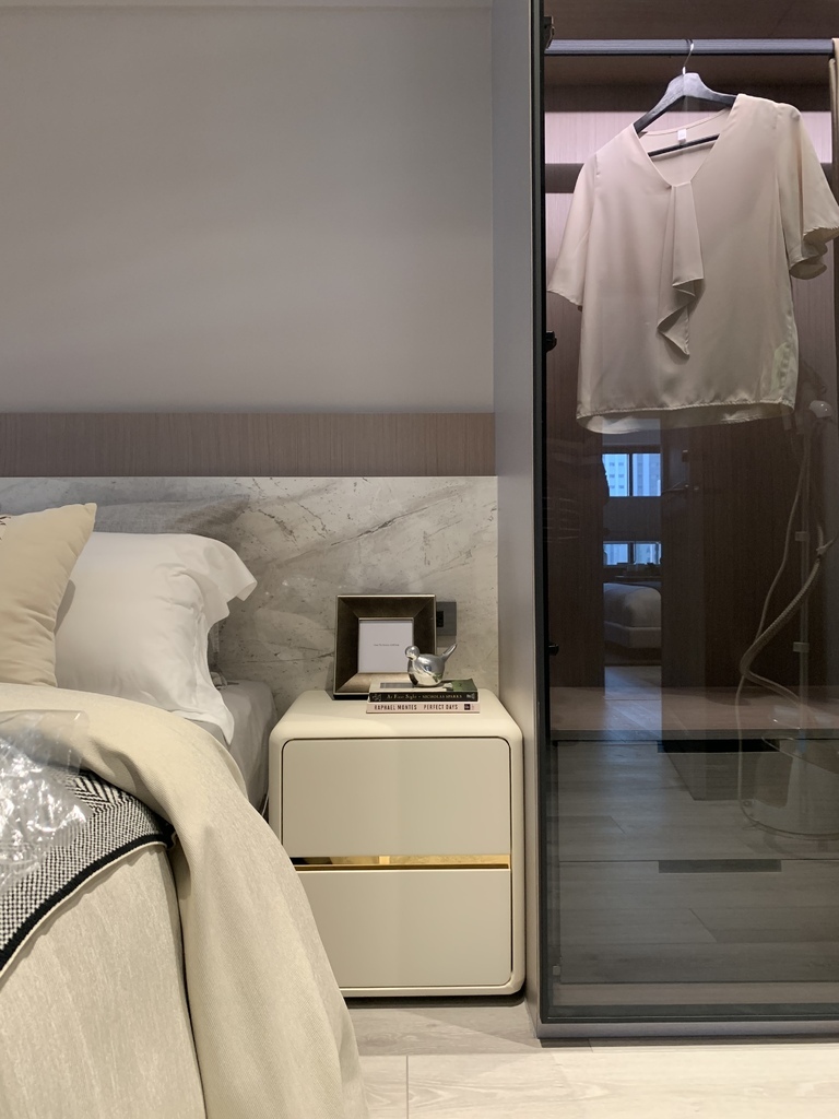 家具上則選擇簡約淺白色去搭配從床台/臥榻/茶几/床頭櫃/化妝椅