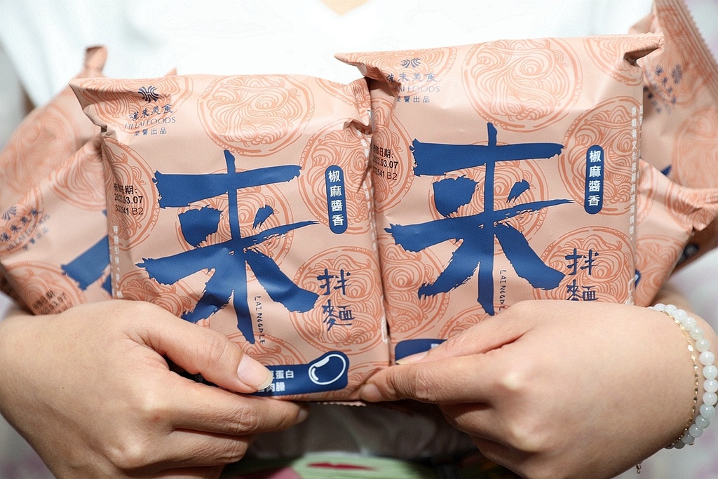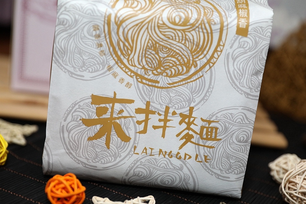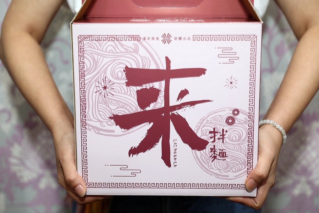 以「來」為包裝主視覺 除了代表漢來 也有招呼來吃麵的親切之意