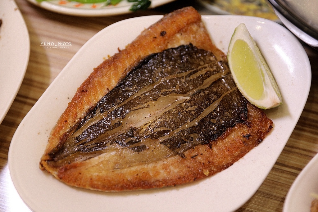 魚肚呈現著火候煎過的金黃色澤 只需要淋上檸檬汁就很美味了
