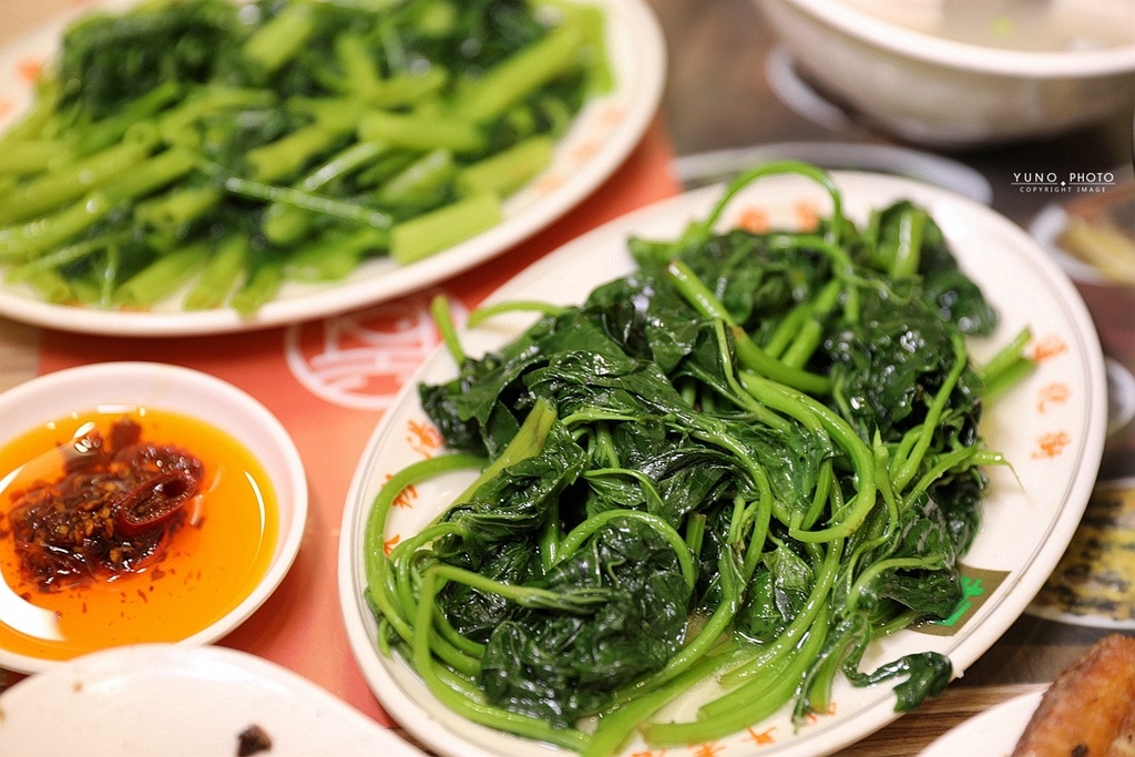 燙時蔬 今天吃到的是空心菜&地瓜葉 大魚大肉也要吃點蔬菜均衡一下