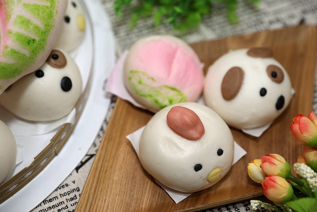 發財雞(紅豆)、富貴熊(黑糖桂圓)、健康豬(芋頭)、旺旺狗(奶黃)