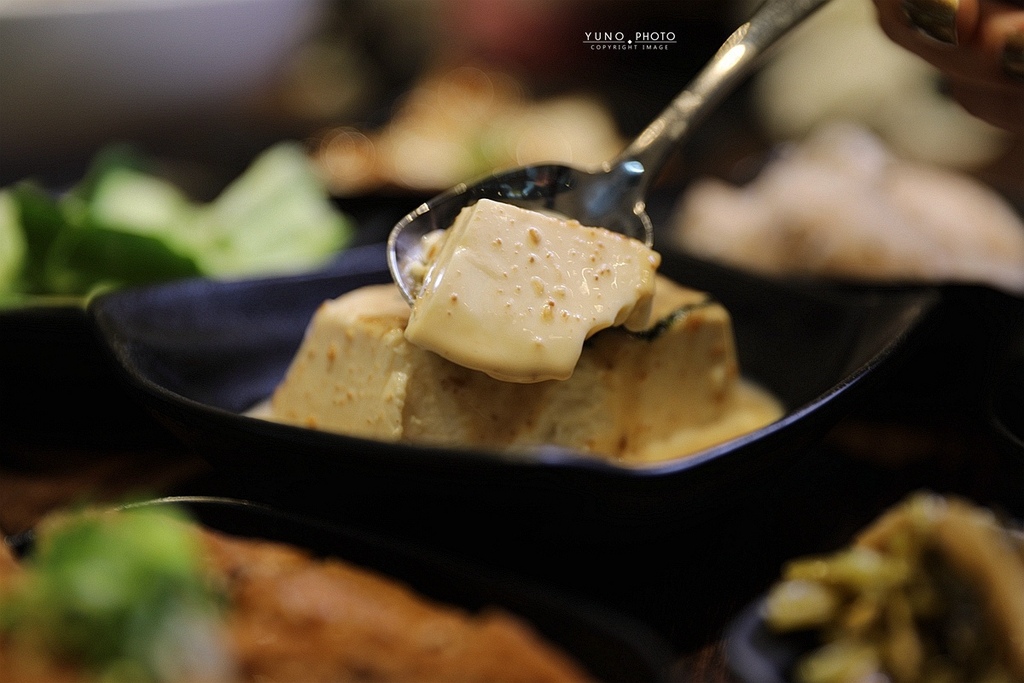 豆腐鮮嫩 淋上特製胡麻醬 非常適合當作前菜 美味與營養兼顧