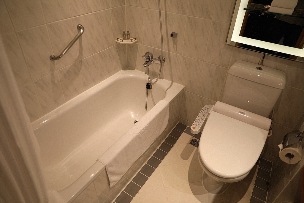 TOTO免治馬桶座、半乾濕分離浴缸 水壓穩定 洗起來滿舒適的