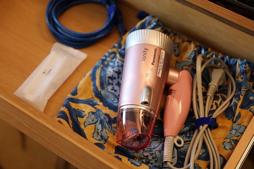 洗手台的小盒子裡還附有化妝棉、牙線、棉花棒、剉刀、針線包....等