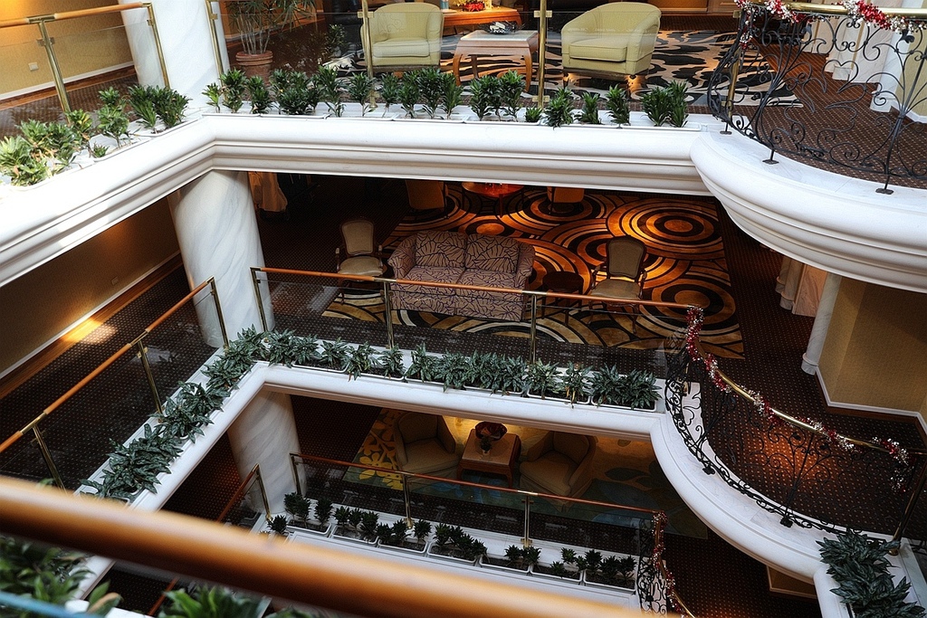 歐華酒店的建築結構採天井 可以讓自然光自然灑落