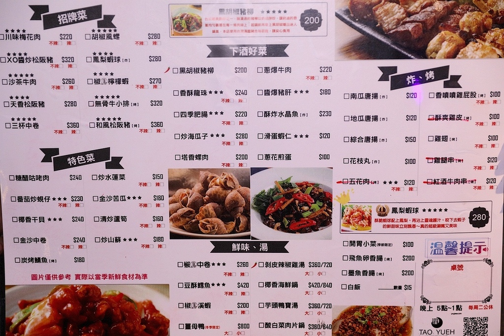 食物類有義大利麵、燉飯、排餐、炸物小點、沙拉、熱炒、火鍋、甜點、港點、烤炸物