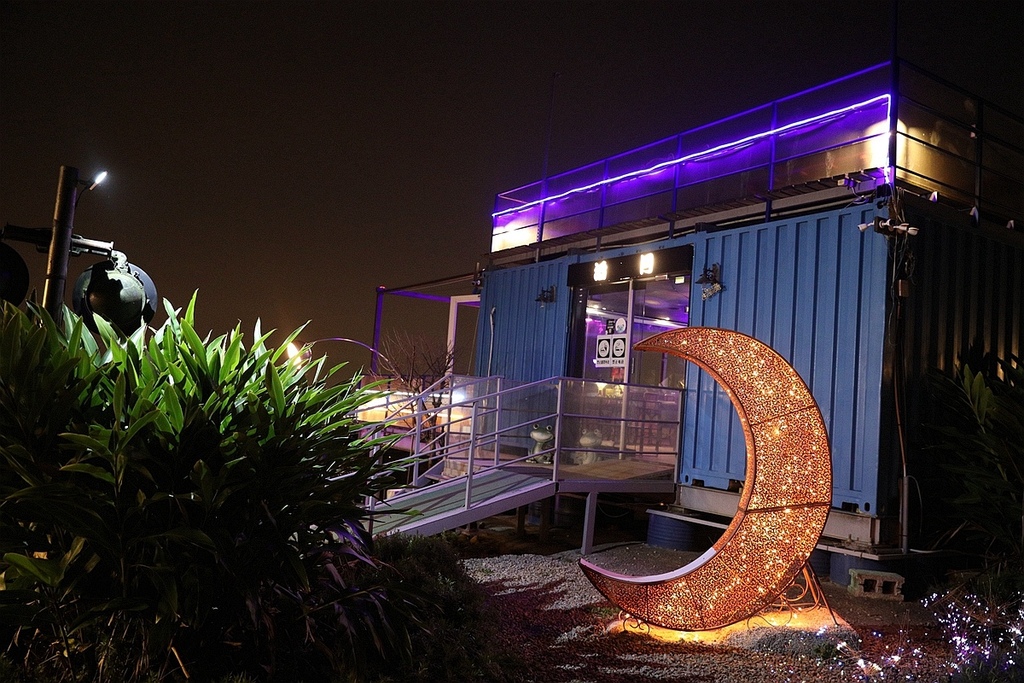 貨櫃屋門口的月亮造景是不少人會坐在這打卡的藝術裝置