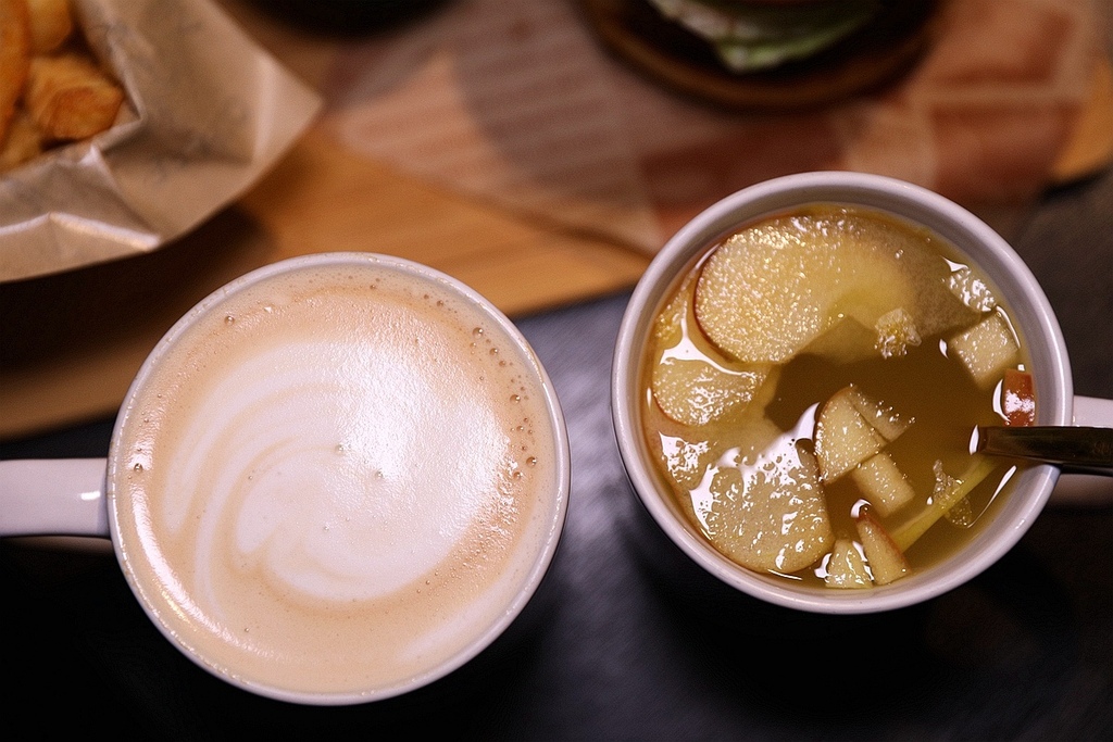 熱呼呼的熱水果茶 有著酸酸甜甜的滋味 甜度不會太高