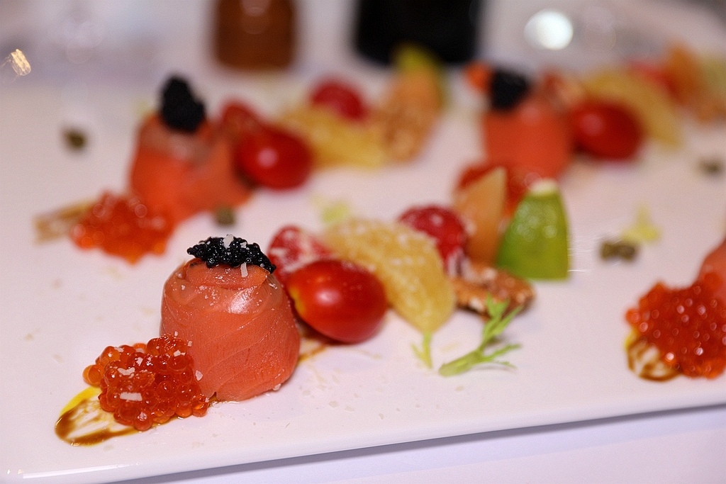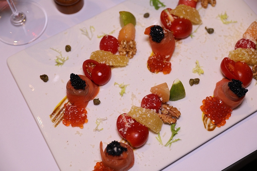 北極圈野生燻鮭魚搭配上德國魚子醬 酸豆一旁做點綴