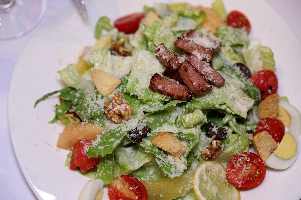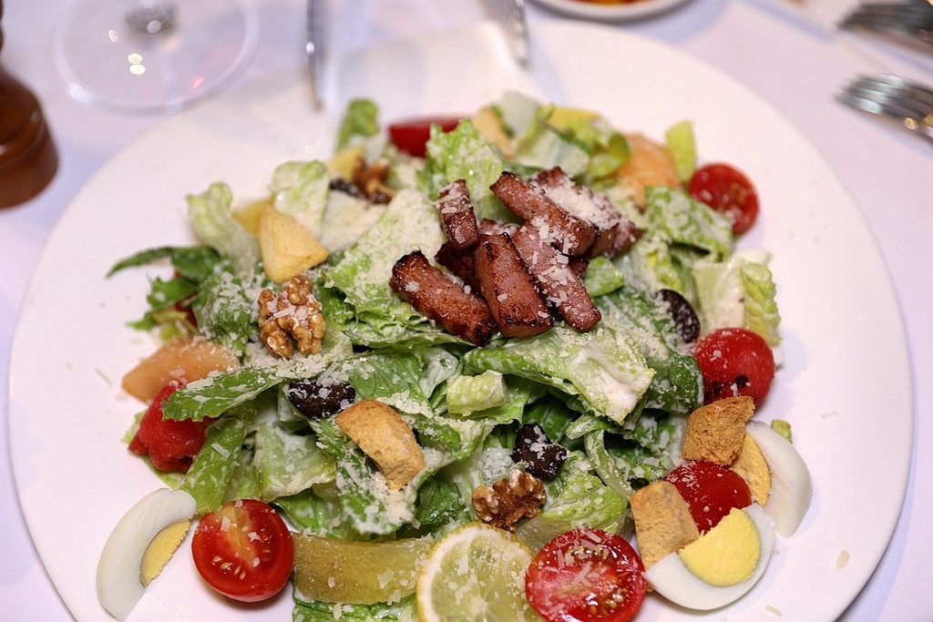 每一片蘿蔓生菜都有均勻沾上凱薩沙拉醬