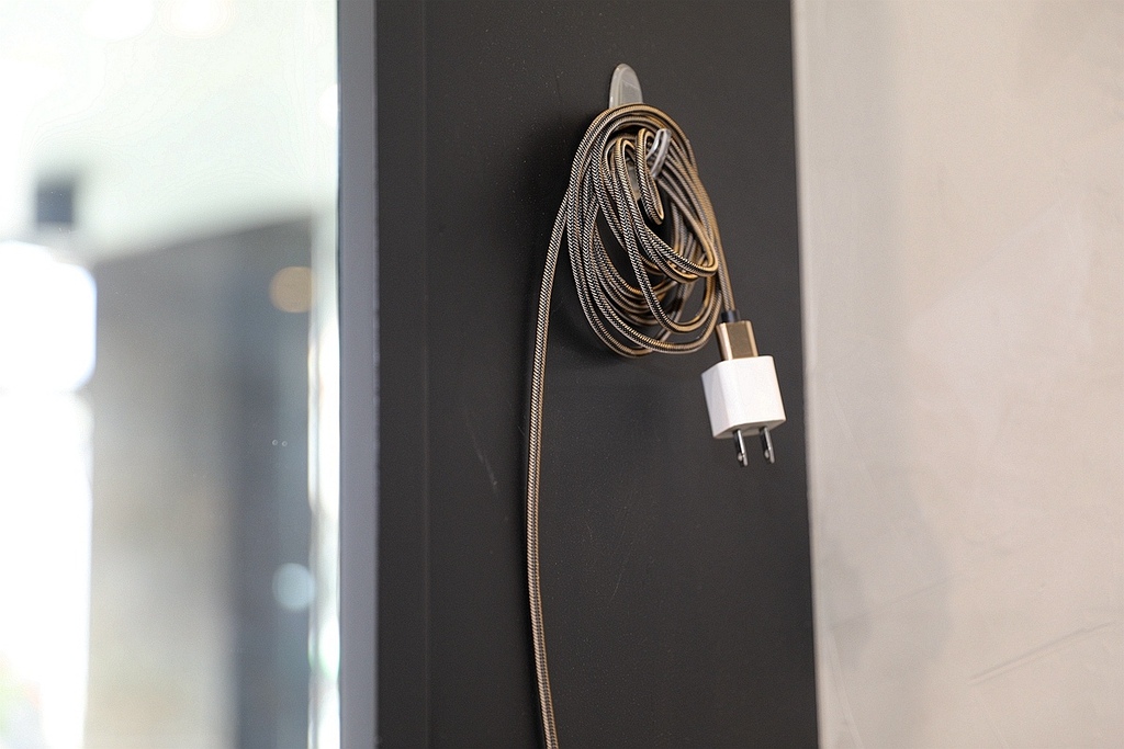 牆壁上也有提供長款充電線插頭 如果手機用到沒電了可以隨時充電
