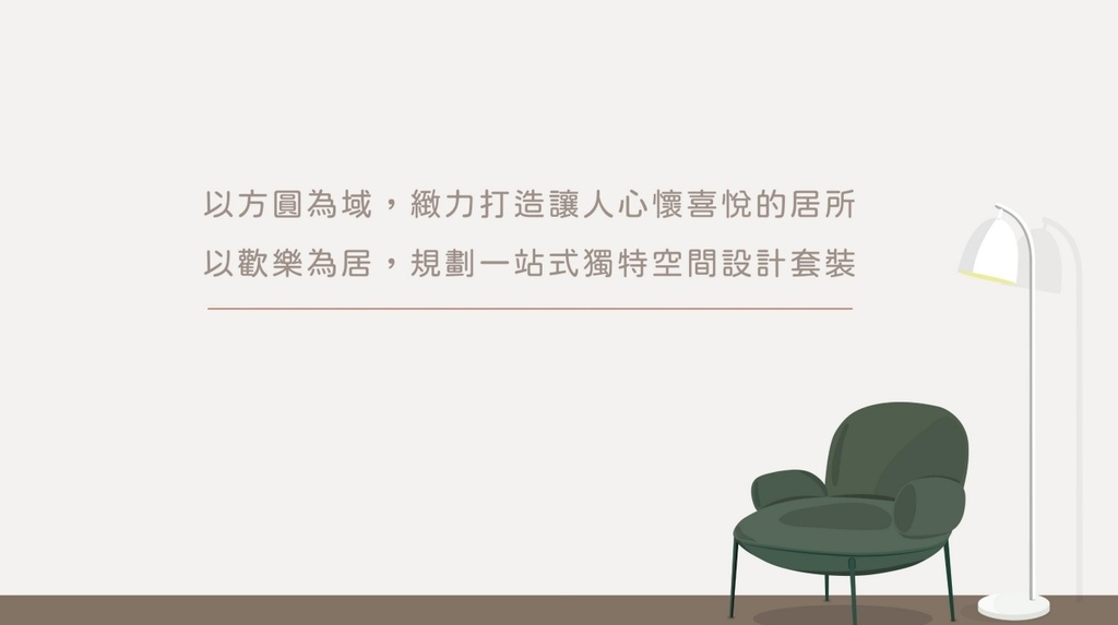 點綴空間風格 包含空間色彩規劃、家具家飾品選購、動線配置等 為您打造更加美好的生活空間!