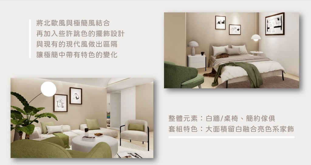 北歐煦日 以亮色系為主搭配上清新自然北歐風格家具呈現出輕盈、不沈重的空間調性 透出簡約風格