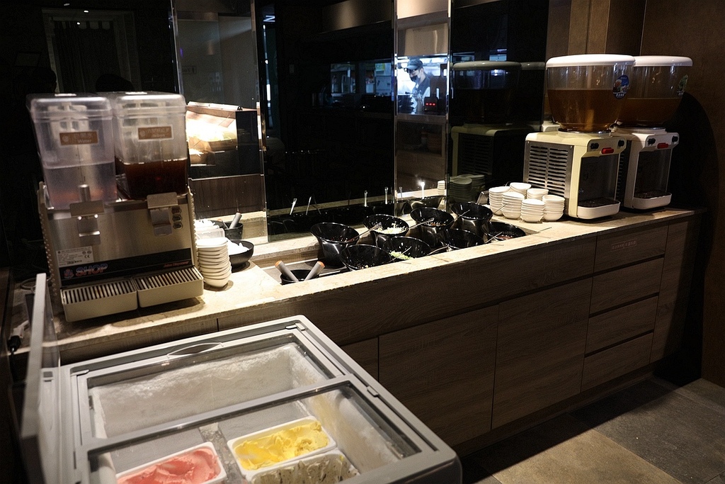 自助吧區 有特各式各樣的醬料、飲品、冰淇淋