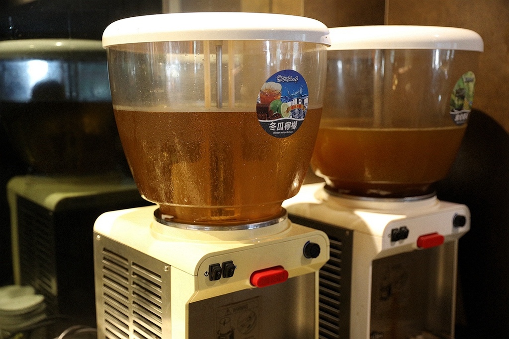 飲品有白開水、古早味紅茶、去油解膩的冬瓜檸檬及清爽的油切綠茶